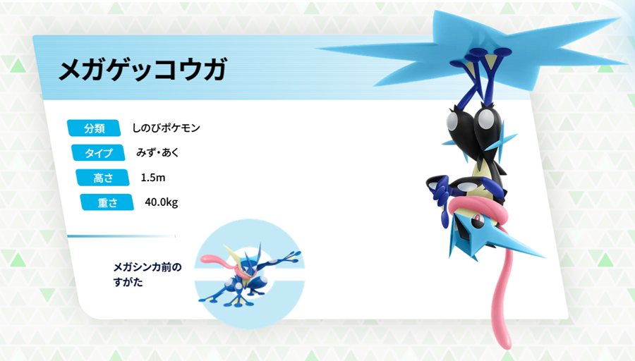 | 特徴 | ・「メガゲッコウガex」等のメガシンカポケモンが多数収録 ・新レアリティ「MUR(ミシカルウルトラレア)」の噂あり ・忍者やスピードをテーマにしたポケモンを中心に構成 |