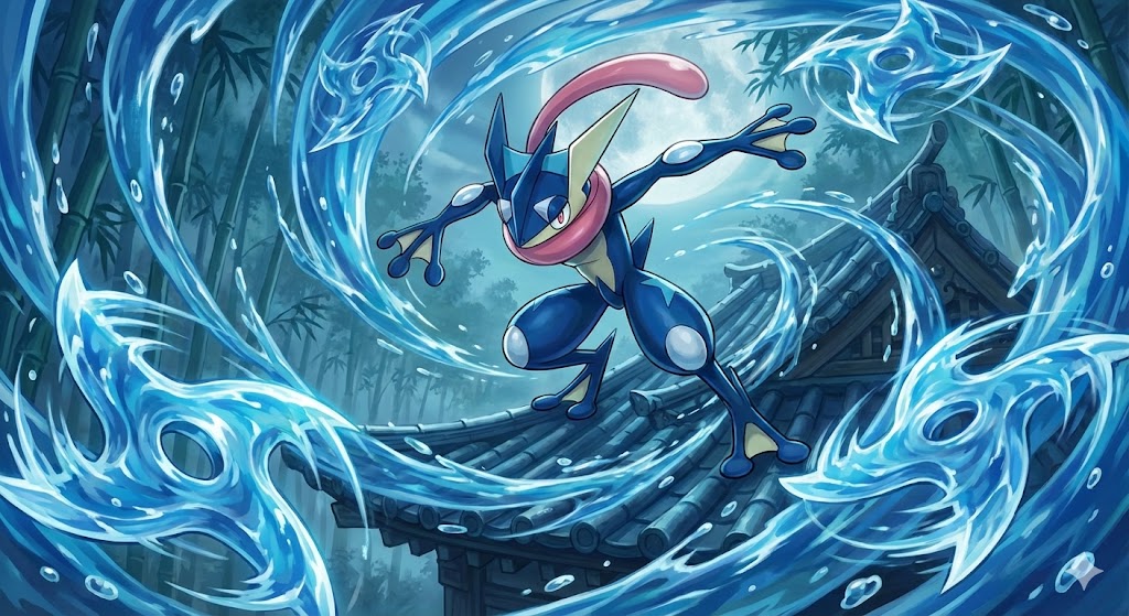 ゲッコウガというポケモン自体が持つ「忍び」のイメージに合わせて、浮世絵風の波の表現や、筆文字のエフェクトが採用される可能性が高いです。